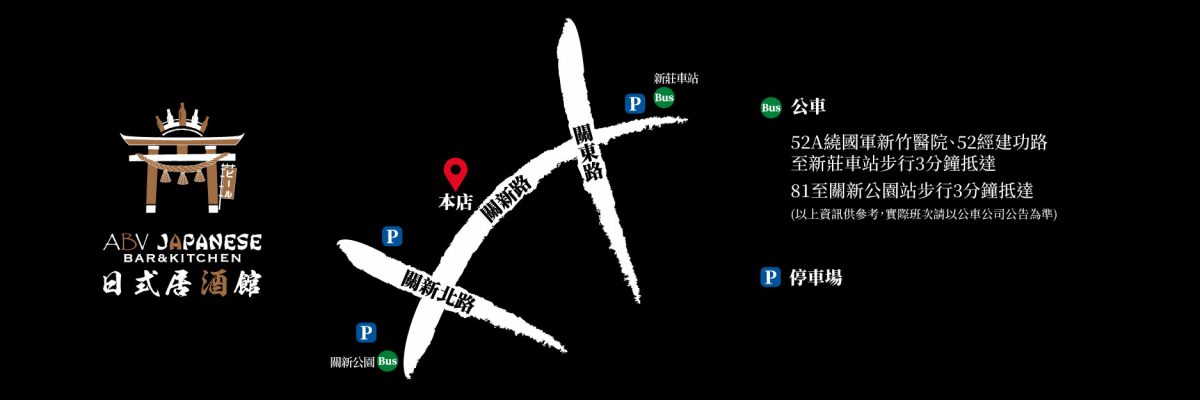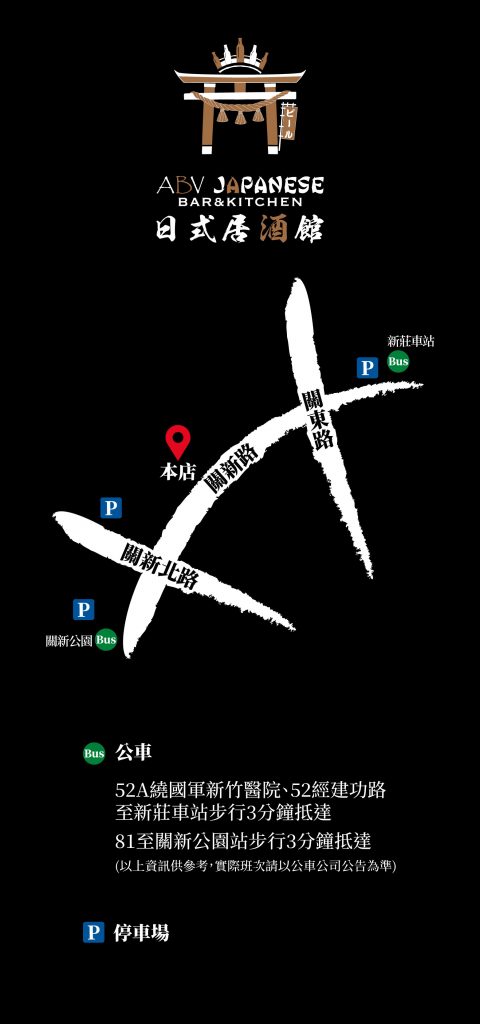 聯絡電話1:03-579-7760聯絡電話2:03-579-7770地址:新竹市東區關新路173號週一~週日 下午4:00~凌晨2:00FB粉絲頁:ABV 日式居酒館 關新店